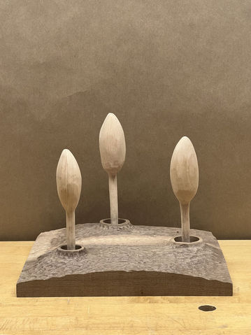 In my current work, I primarily use different species of wood to evolve sculptural forms within novel ecologies. I imagine how biomorphic objects might adapt and thrive in alien environments, delving into territory that merges art and ecological principles.